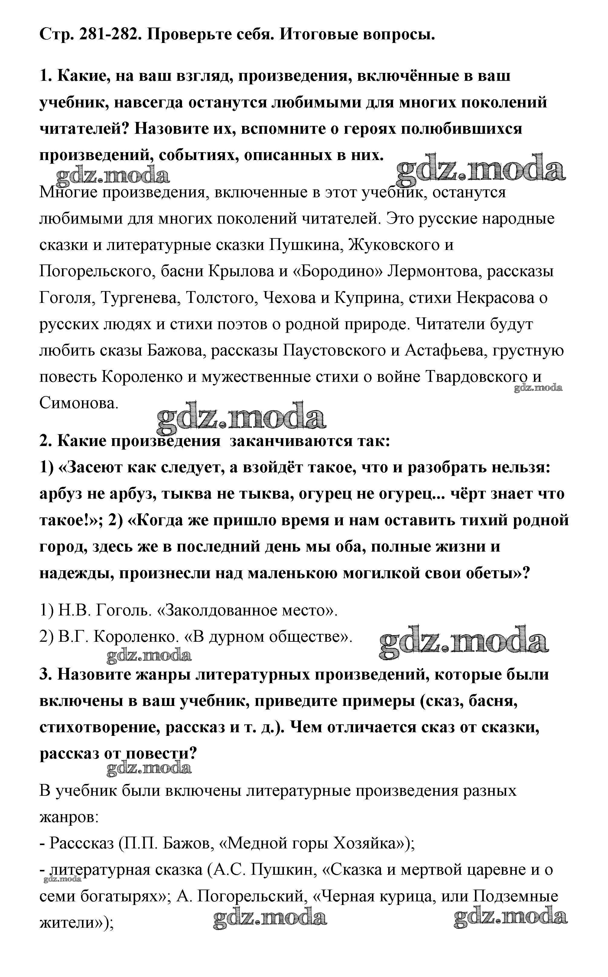 ОТВЕТ на задание № 281 Учебник по Литературе 5 класс Коровина