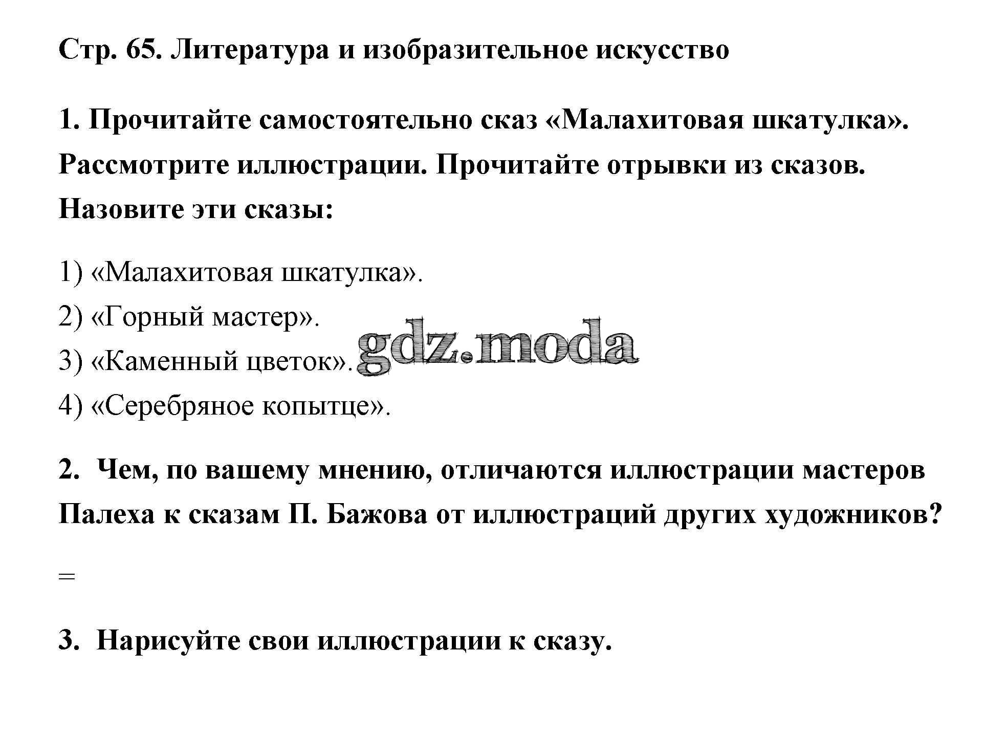 ГДЗ решение к заданию № 65 Литература 5 класс Коровина Просвещение 2016 Часть 1, Часть 2 ФГОС бесплатно на гдз.мода!
