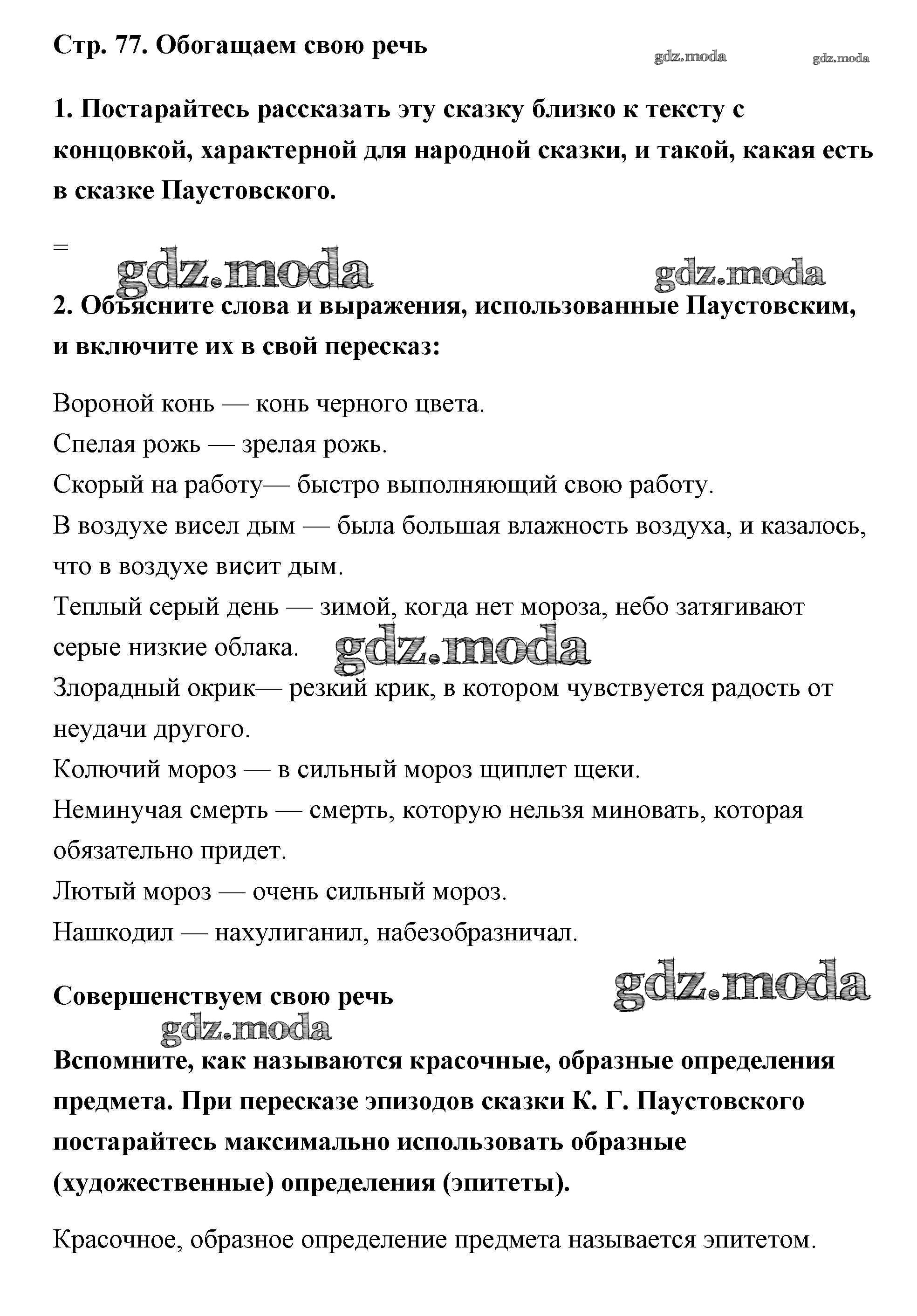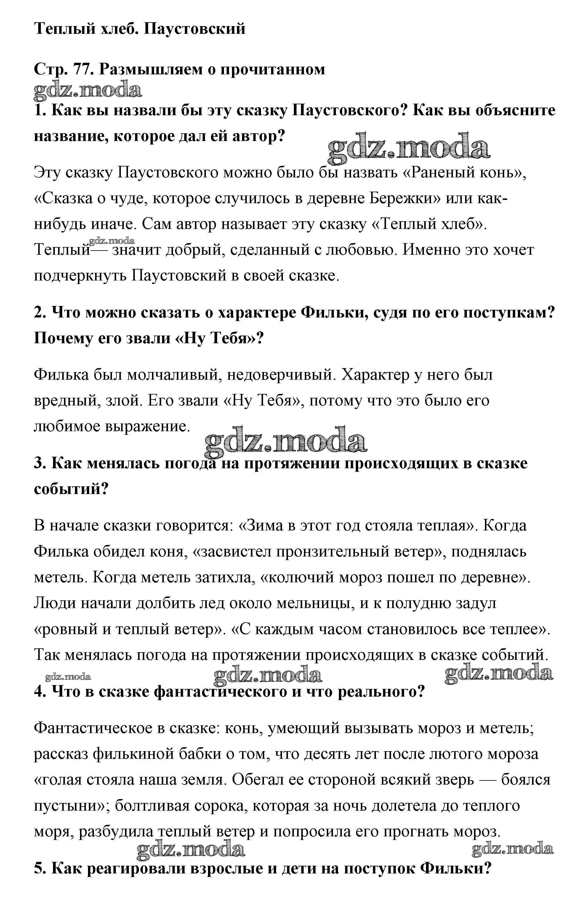 ГДЗ решение к заданию № 77 Литература 5 класс Коровина Просвещение 2016 Часть 1, Часть 2 ФГОС бесплатно на гдз.мода!
