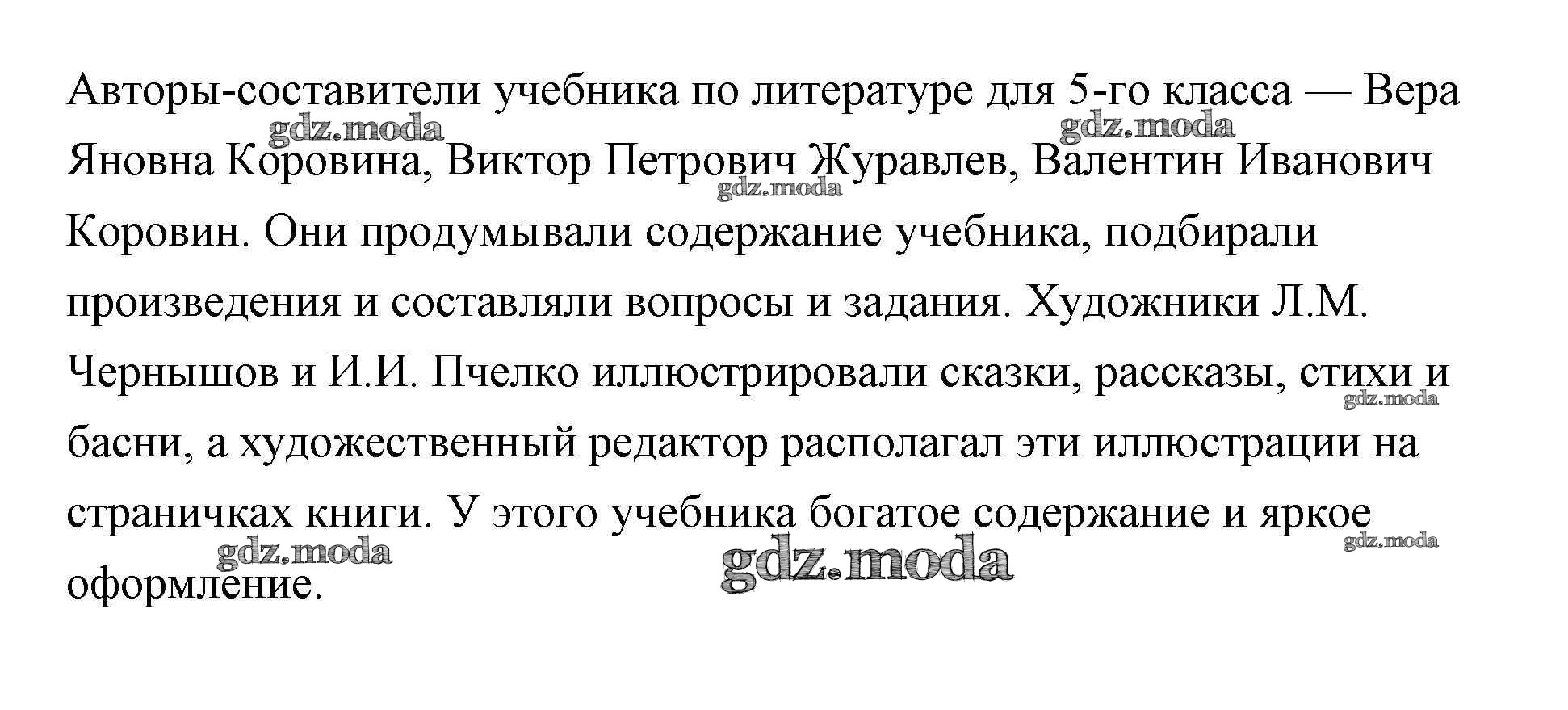 ГДЗ решение к заданию № 5 Литература 5 класс Коровина Просвещение 2016 Часть 1, Часть 2 ФГОС бесплатно на гдз.мода!