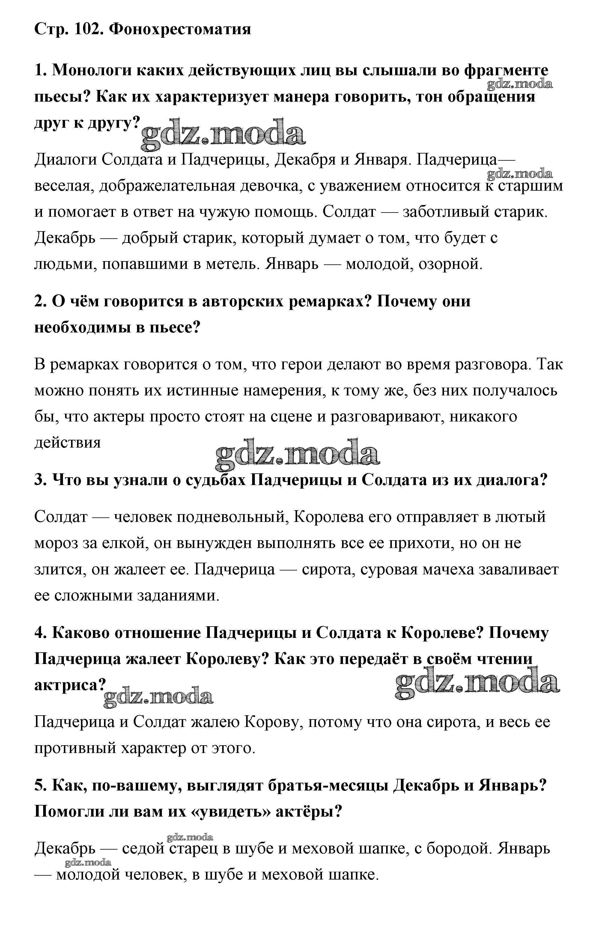 ОТВЕТ на задание № 102 Учебник по Литературе 5 класс Коровина