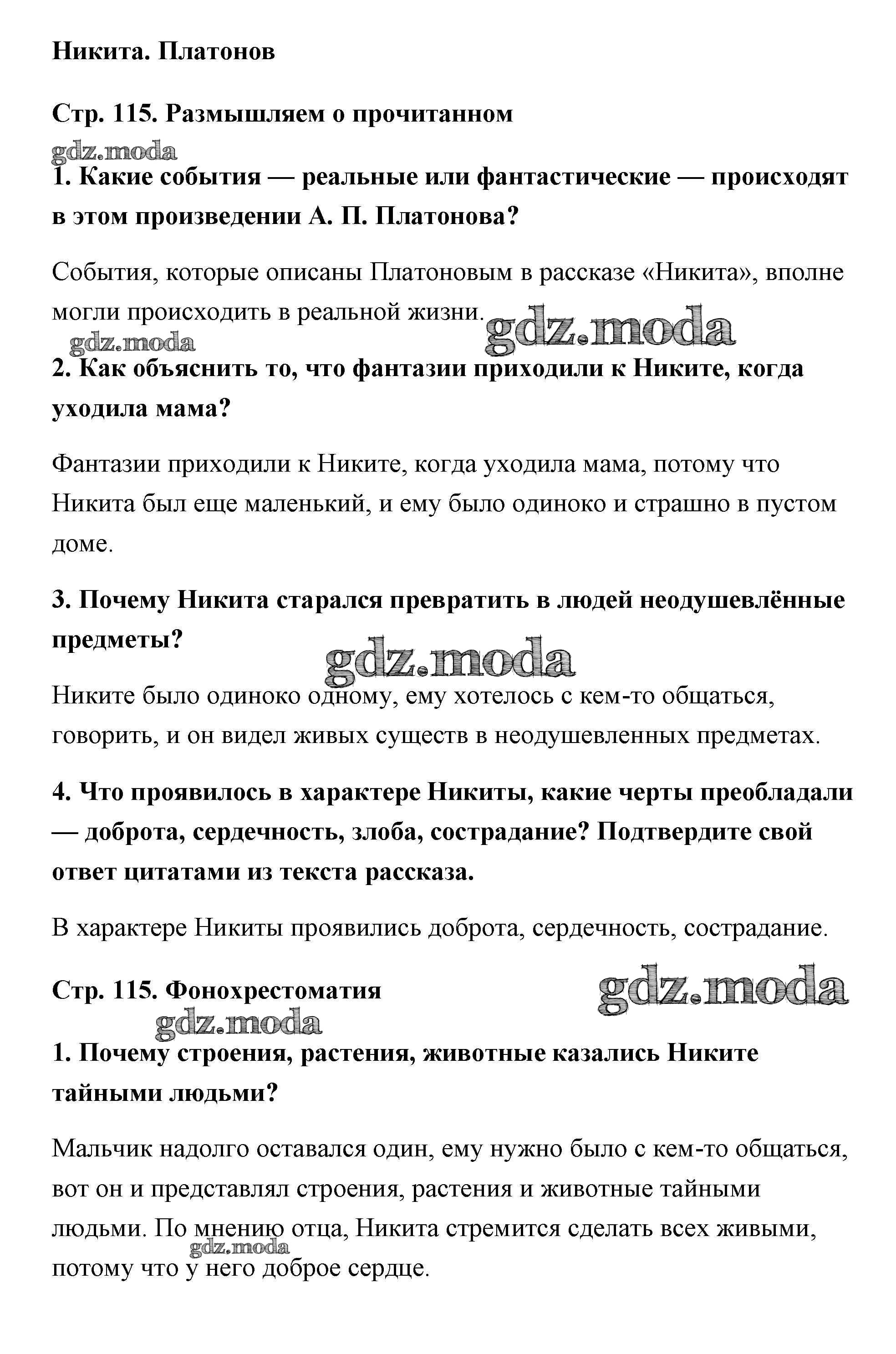 ОТВЕТ на задание № 115 Учебник по Литературе 5 класс Коровина