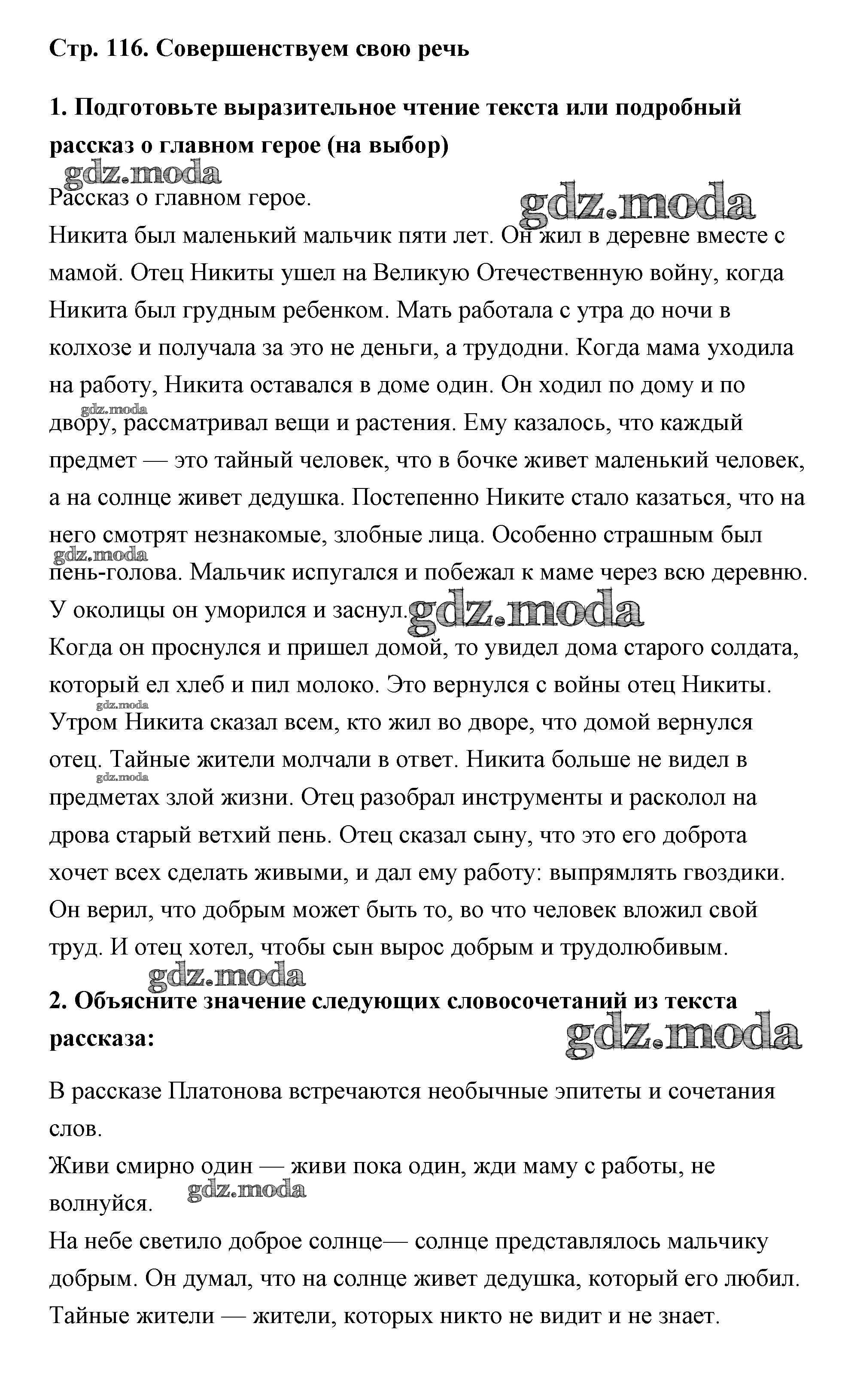 ГДЗ решение к заданию № 116 Литература 5 класс Коровина Просвещение 2016 Часть 1, Часть 2 ФГОС бесплатно на гдз.мода!