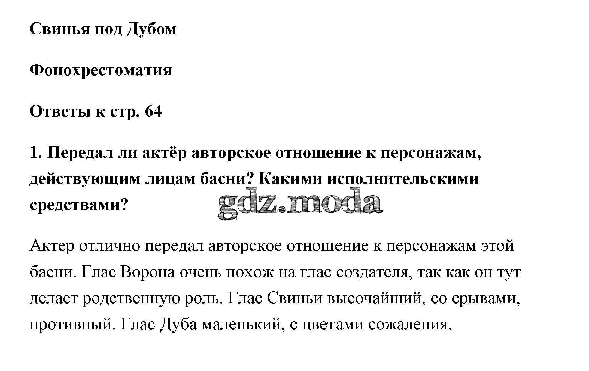 ОТВЕТ на задание № 64 Учебник по Литературе 5 класс Коровина