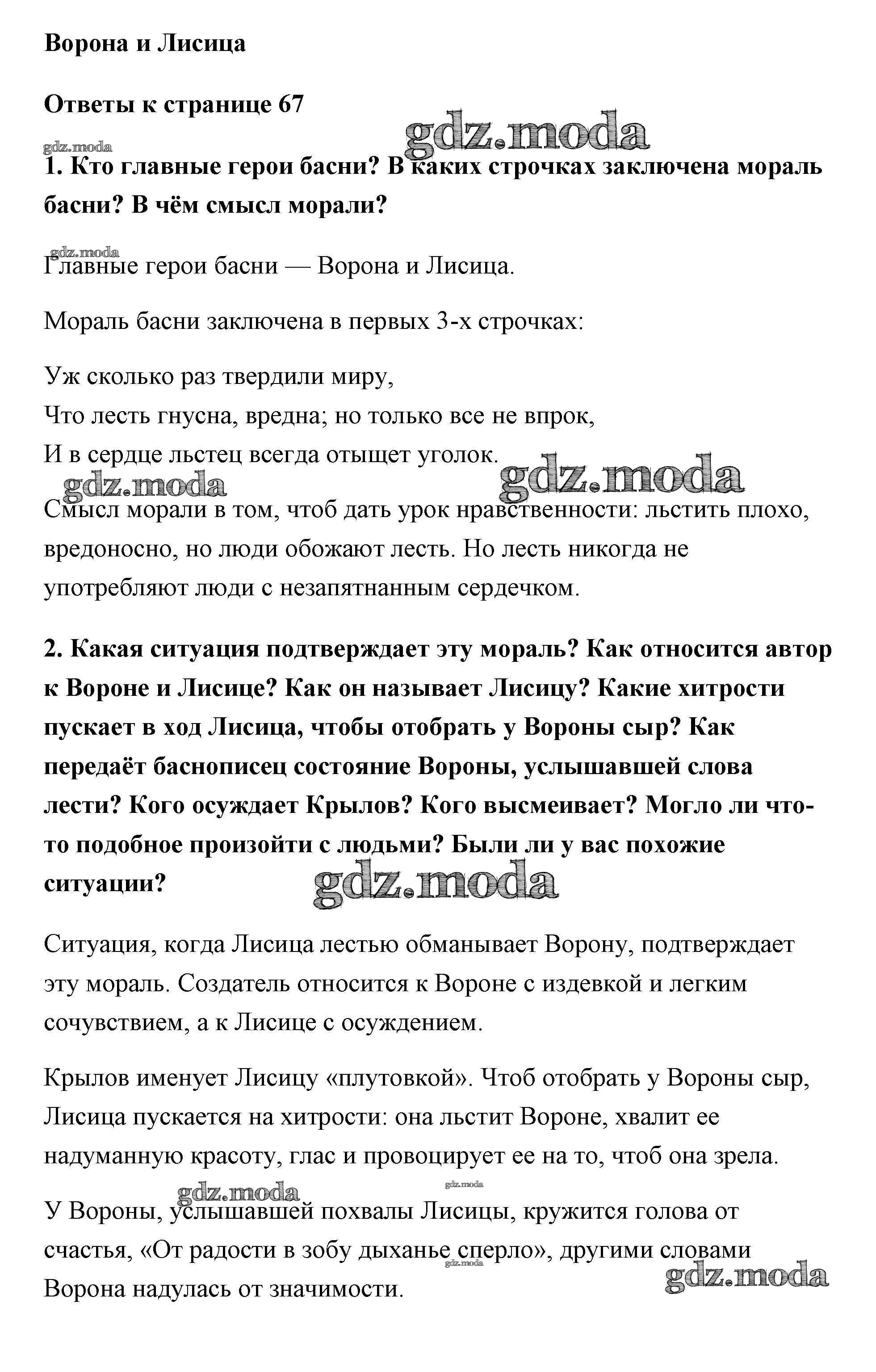 ГДЗ решение к заданию № 67 Литература 5 класс Коровина Просвещение 2016 Часть 1, Часть 2 ФГОС бесплатно на гдз.мода!