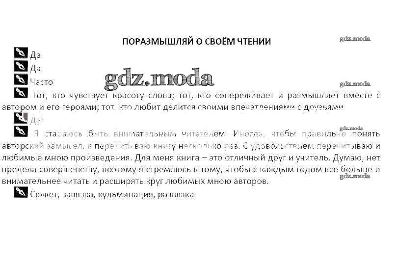 ГДЗ решение к заданию № Поразмышляй о своём чтении Литература 5 класс рабочая тетрадь Курдюмова Т.Ф. Дрофа 2017 Часть 1, Часть 2 ФГОС бесплатно на гдз.мода!