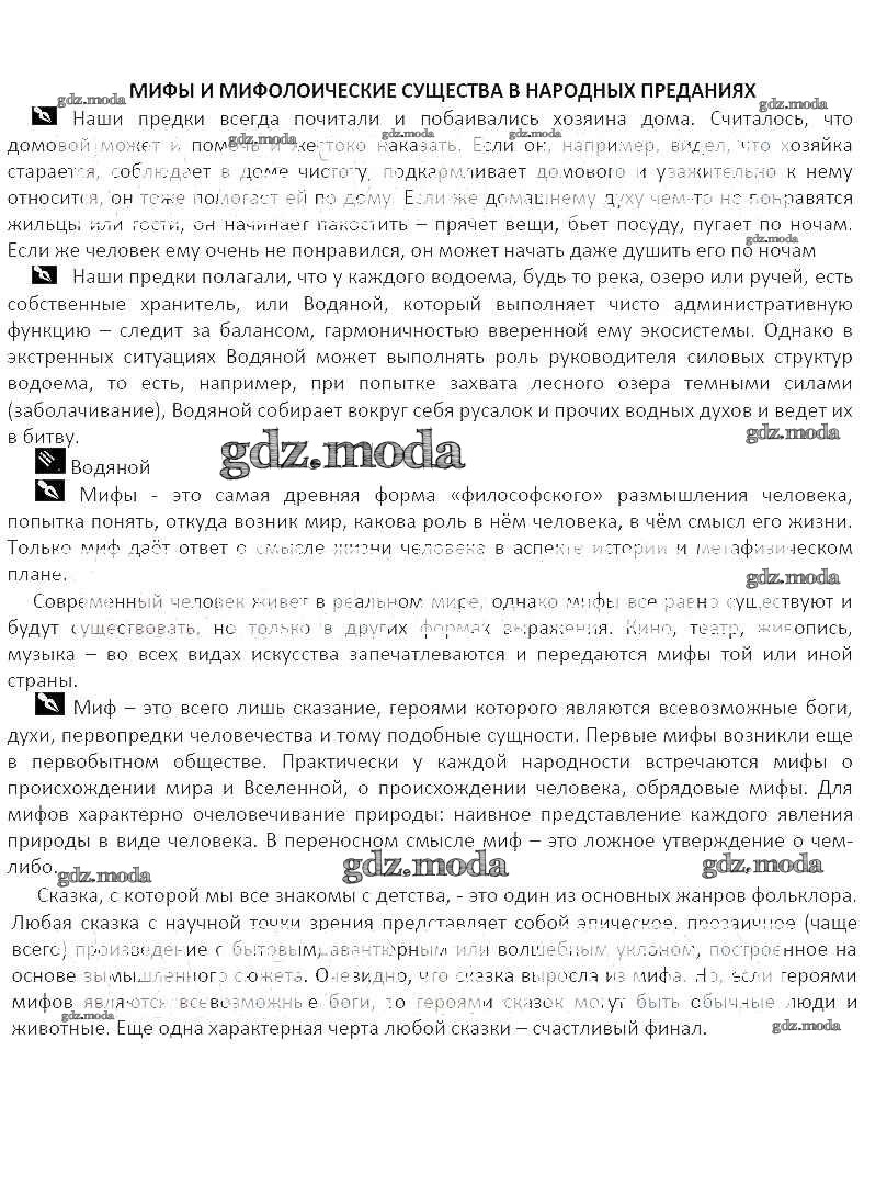 ОТВЕТ на задание № Мифы и мифологические существа в народных преданиях Рабочая тетрадь по Литературе 5 класс Курдюмова Вертикаль