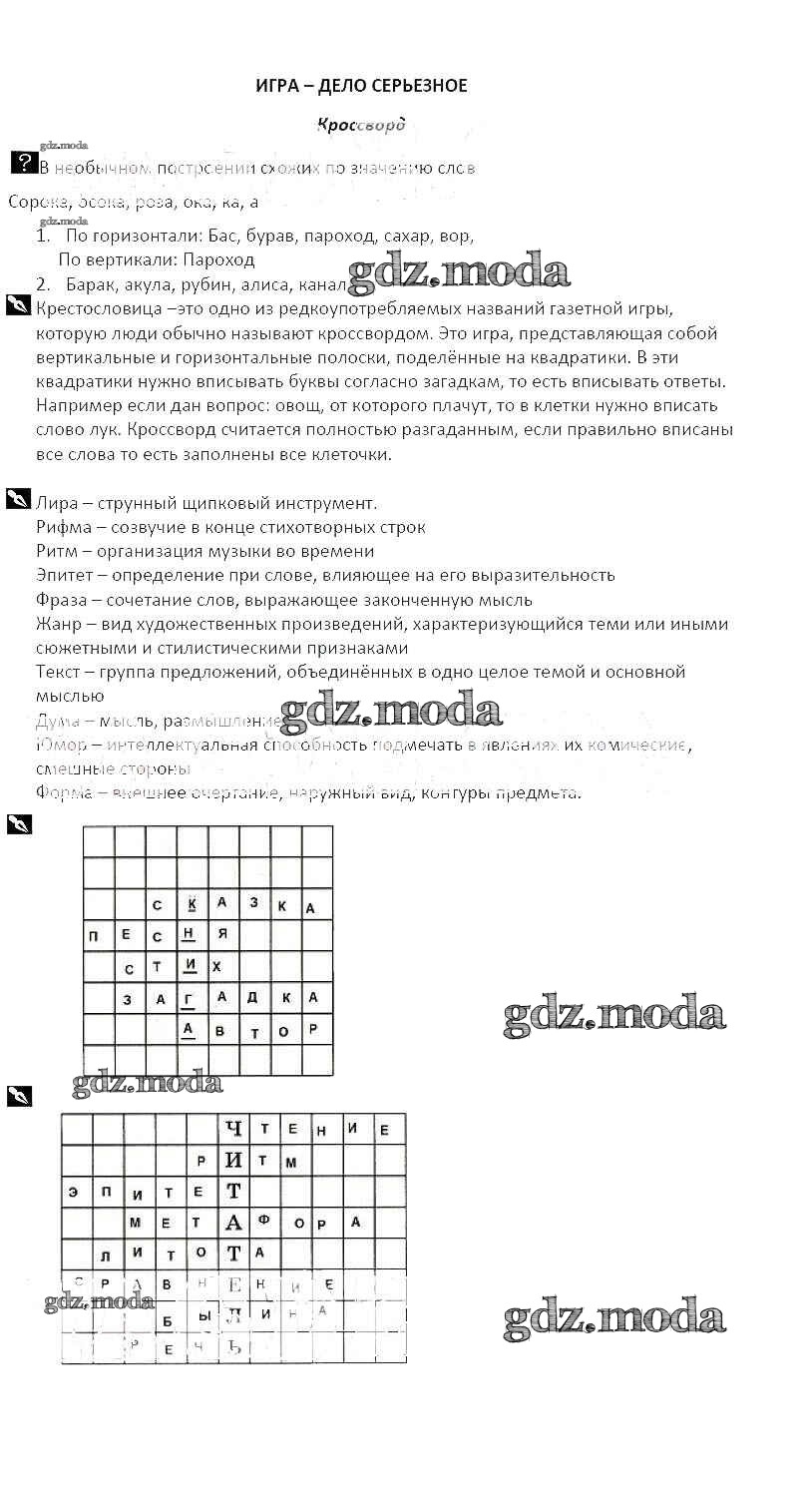 ГДЗ решение к заданию № Кроссворд Литература 5 класс рабочая тетрадь Курдюмова Т.Ф. Дрофа 2017 Часть 1, Часть 2 ФГОС бесплатно на гдз.мода!