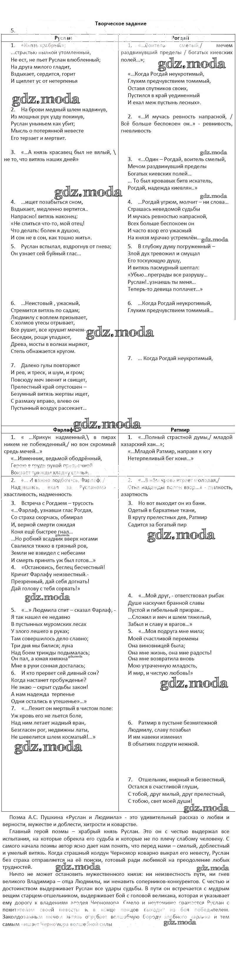 ОТВЕТ на задание № 5 Рабочая тетрадь по Литературе 5 класс Ланин Алгоритм успеха