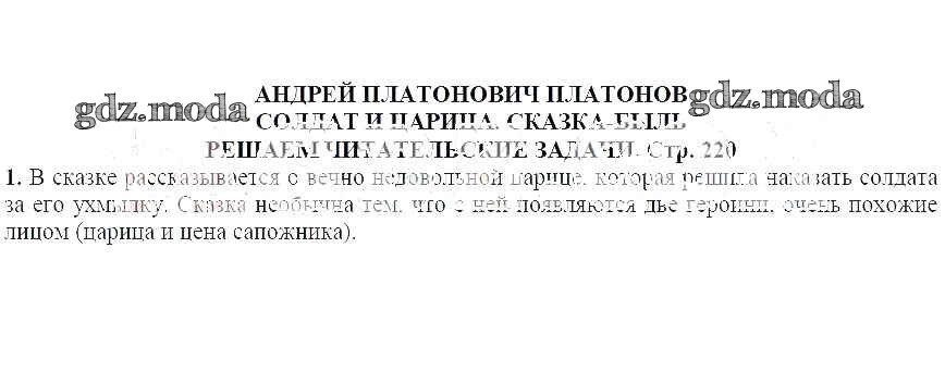 часть 1 / Андрей Платонович Платонов. Солдат и царица. Сказка-быль / Решаем читательские задачи (стр.220) / 1