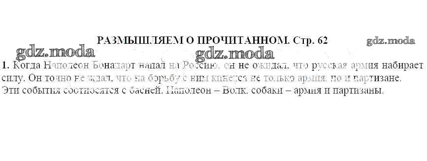 ГДЗ решение к заданию № 62 Литература 5 класс Коровина Просвещение 2019 Часть 1, Часть 2 ФГОС бесплатно на гдз.мода!