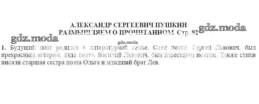 ОТВЕТ на задание № 92 Учебник по Литературе 5 класс Коровина