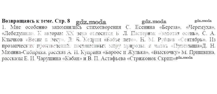 ОТВЕТ на задание № 8 Учебник по Литературе 5 класс Меркин Инновационная школа