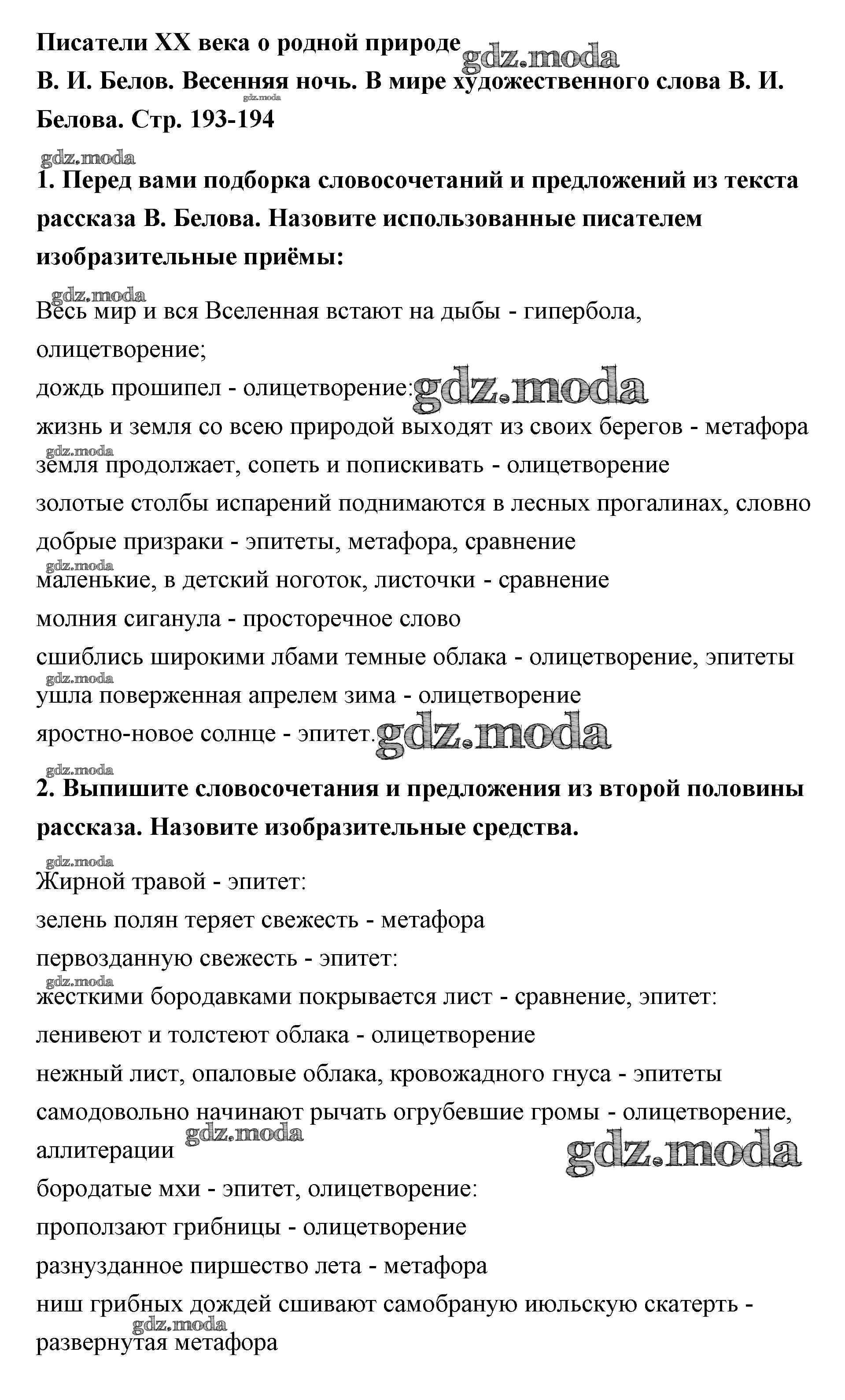 ОТВЕТ на задание № 193 Учебник по Литературе 5 класс Меркин Инновационная школа