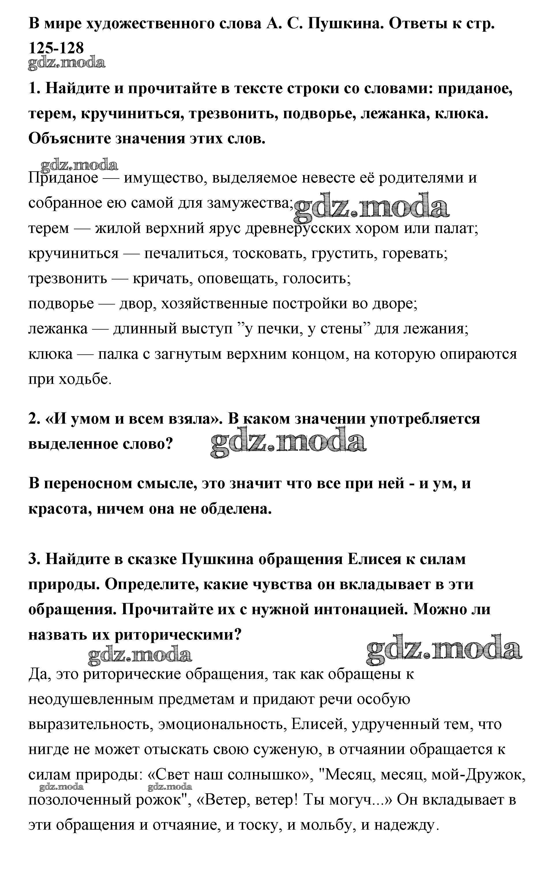 ОТВЕТ на задание № 125-128 Учебник по Литературе 5 класс Меркин Инновационная школа