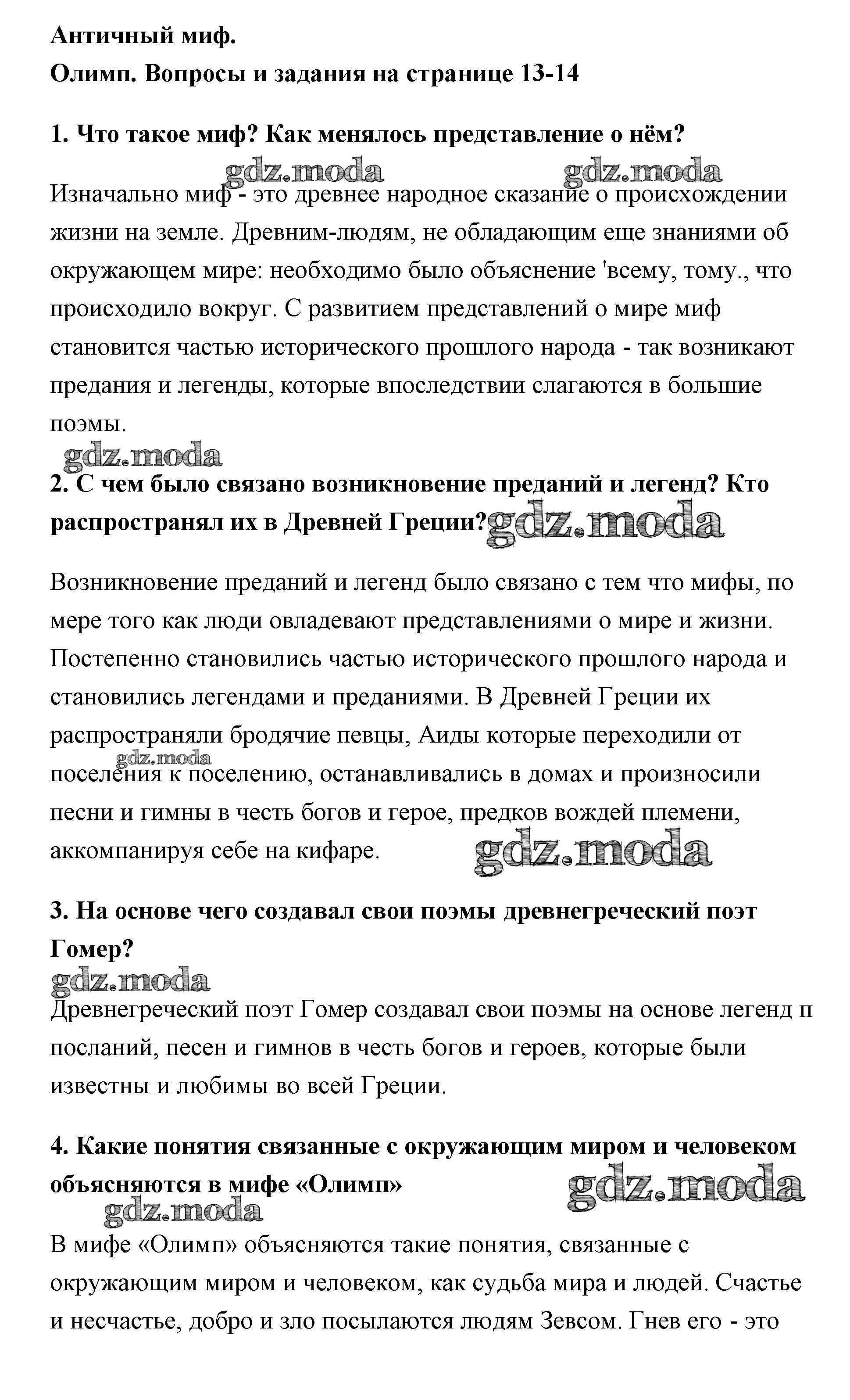 ОТВЕТ на задание № 13-14 Учебник по Литературе 5 класс Меркин Инновационная школа