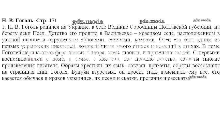 ГДЗ решение к заданию № 171 Литература 5 класс Меркин Г.С. Русское слово 2016 Часть 1, Часть 2 ФГОС бесплатно на гдз.мода!