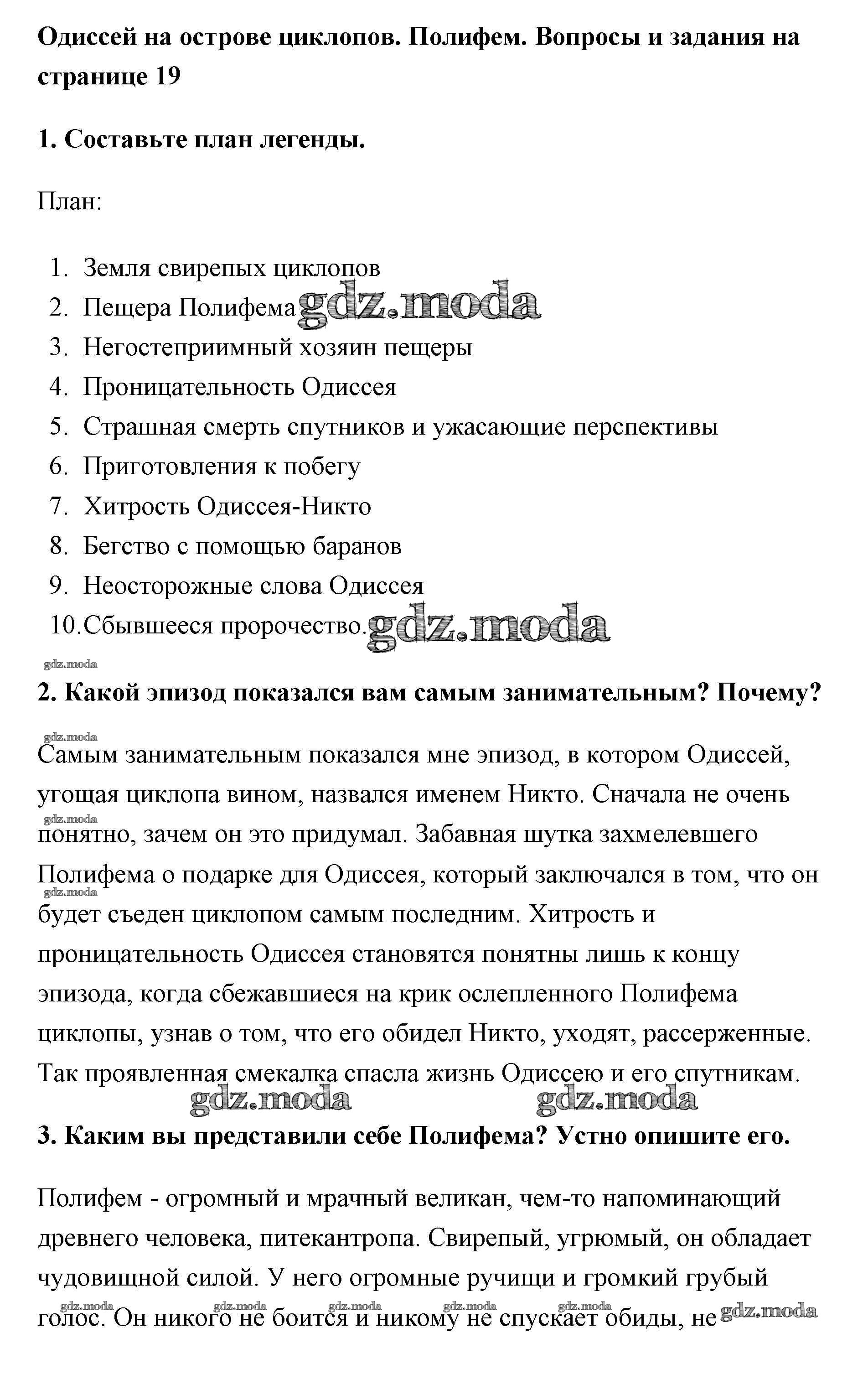 ОТВЕТ на задание № 19 Учебник по Литературе 5 класс Меркин Инновационная школа