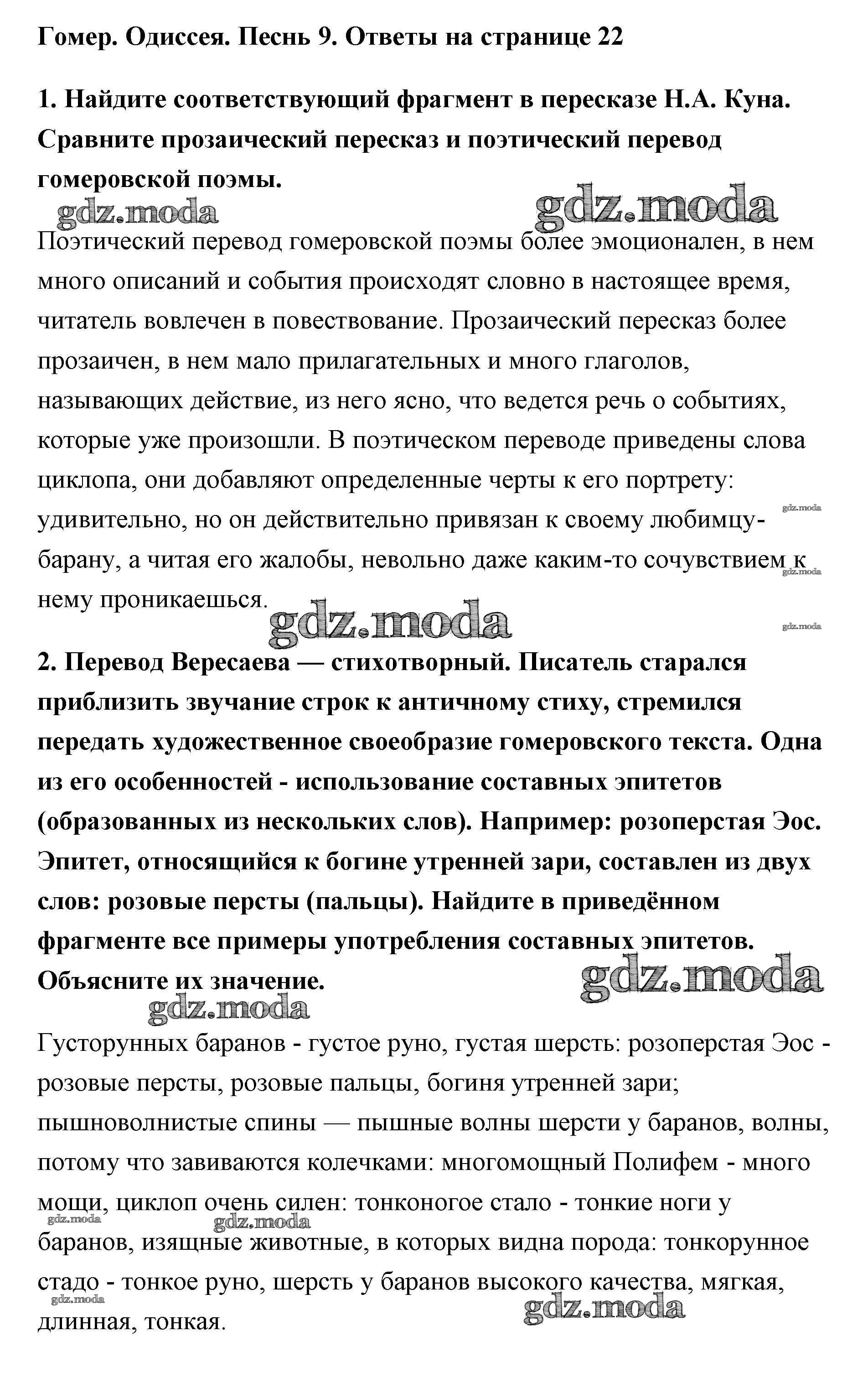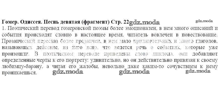 ОТВЕТ на задание № 22 Учебник по Литературе 5 класс Меркин Инновационная школа