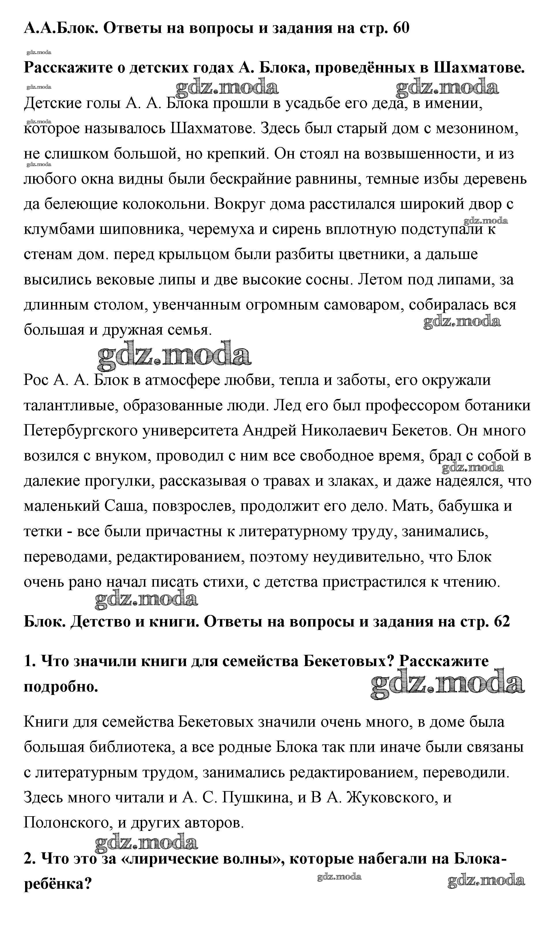 ОТВЕТ на задание № 60 Учебник по Литературе 5 класс Меркин Инновационная школа