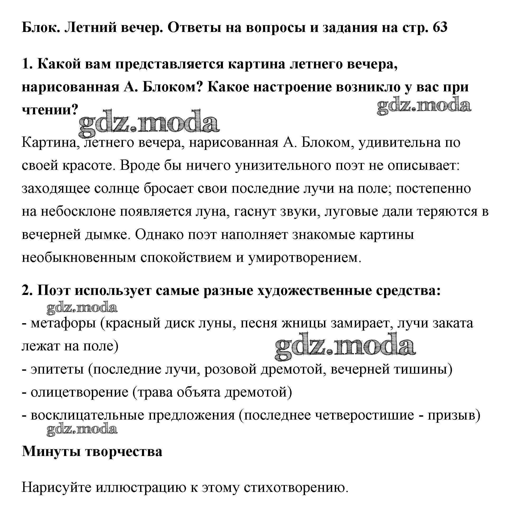 ОТВЕТ на задание № 63 Учебник по Литературе 5 класс Меркин Инновационная школа