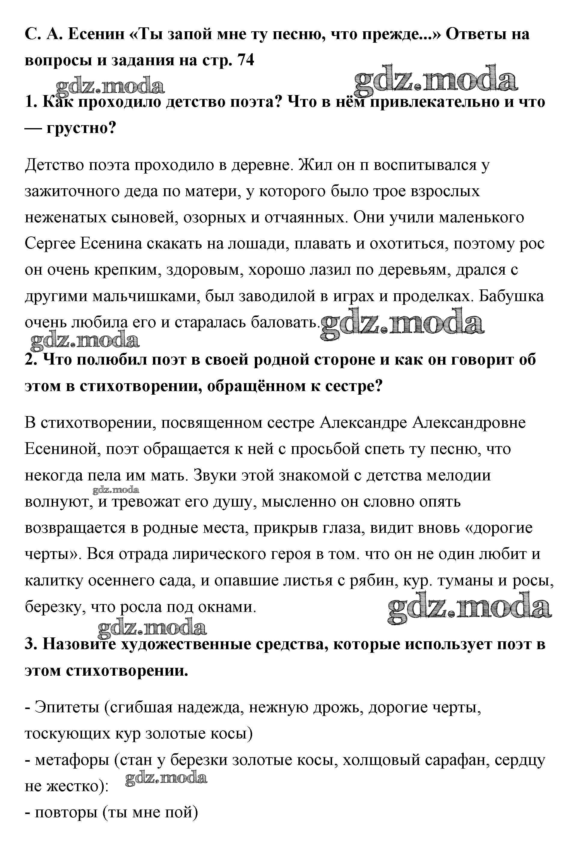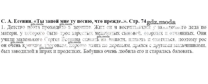 ОТВЕТ на задание № 74 Учебник по Литературе 5 класс Меркин Инновационная школа