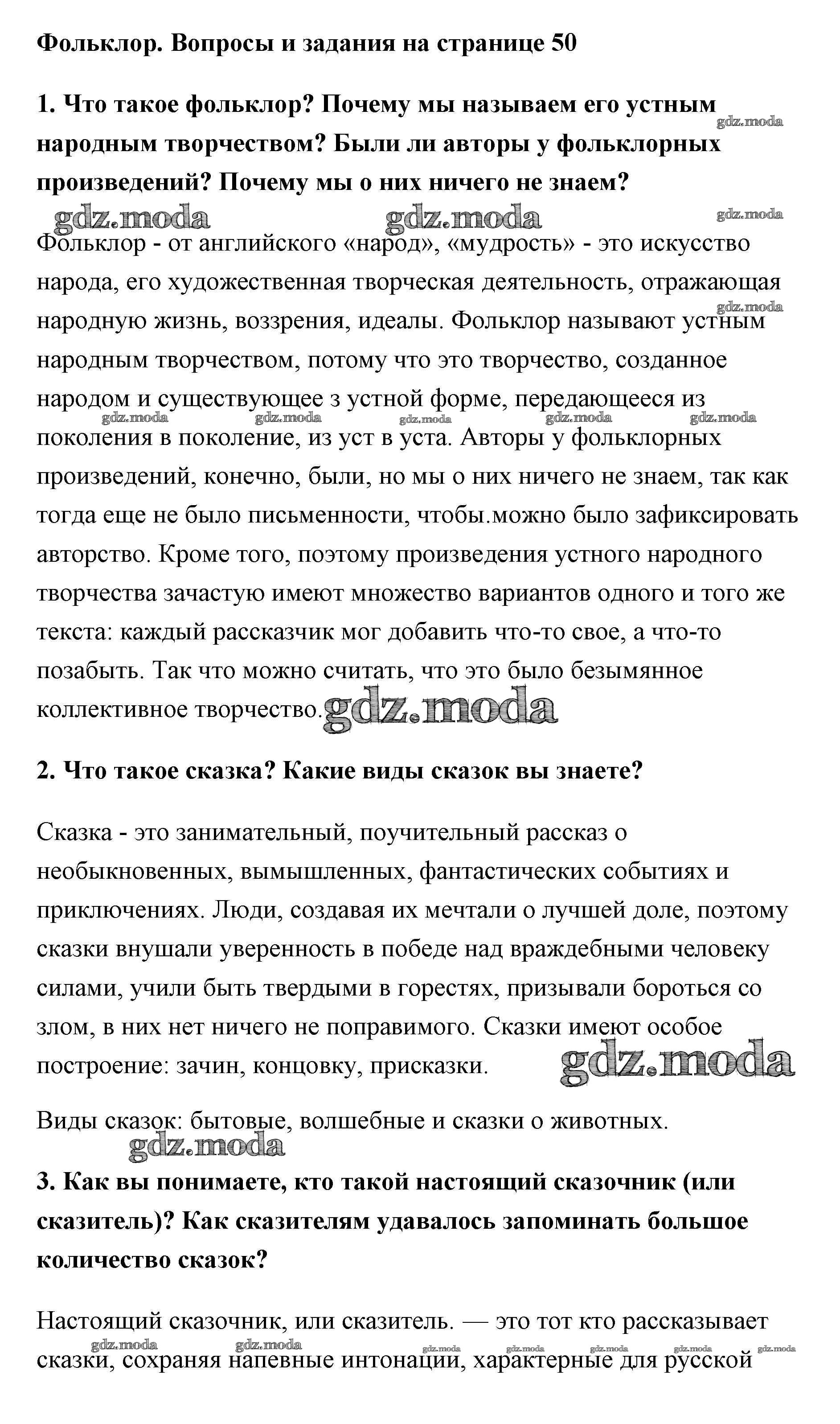 ОТВЕТ на задание № 50 Учебник по Литературе 5 класс Меркин Инновационная школа