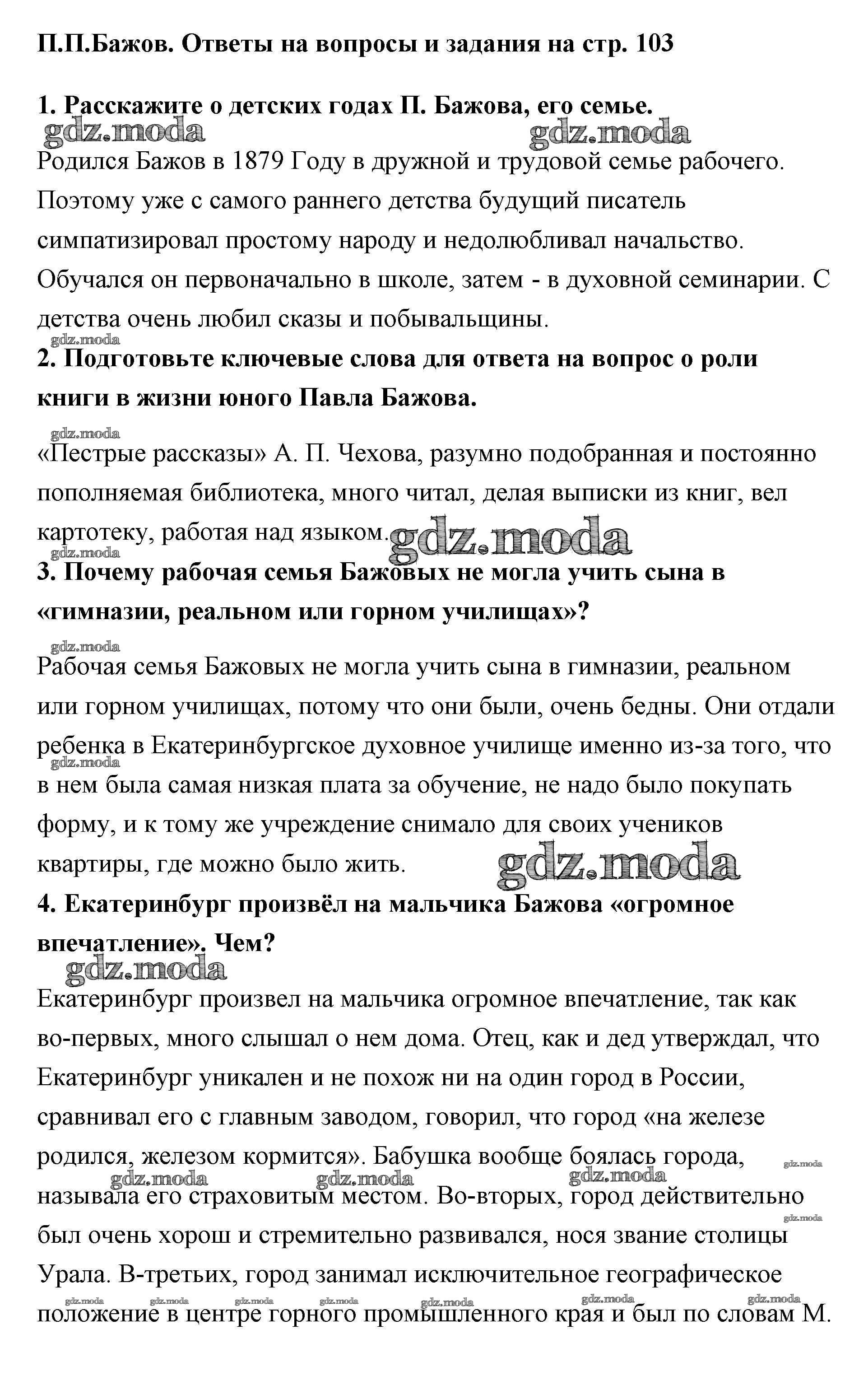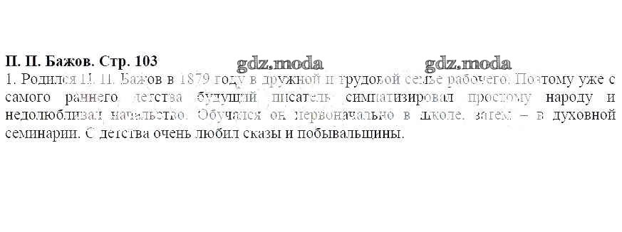 ОТВЕТ на задание № 103 Учебник по Литературе 5 класс Меркин Инновационная школа