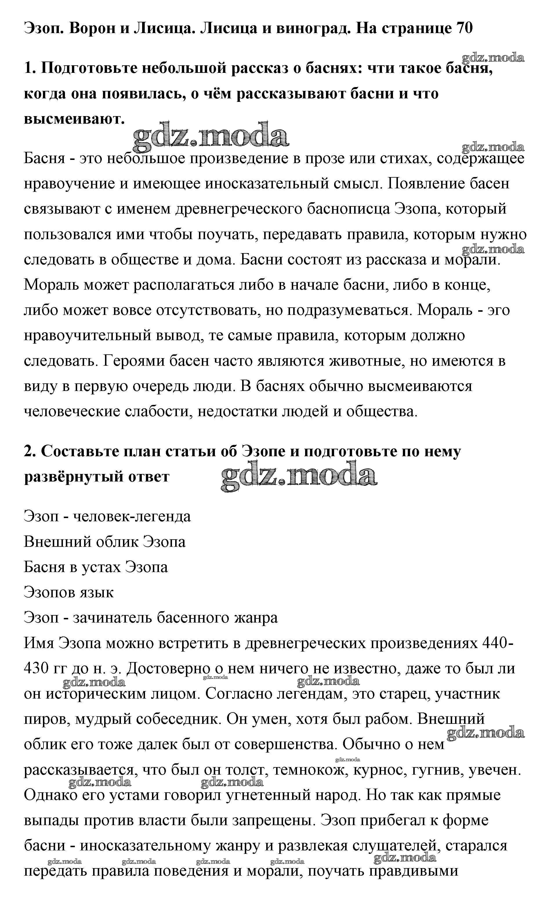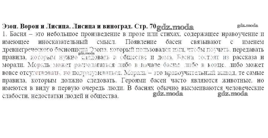ОТВЕТ на задание № 70 Учебник по Литературе 5 класс Меркин Инновационная школа