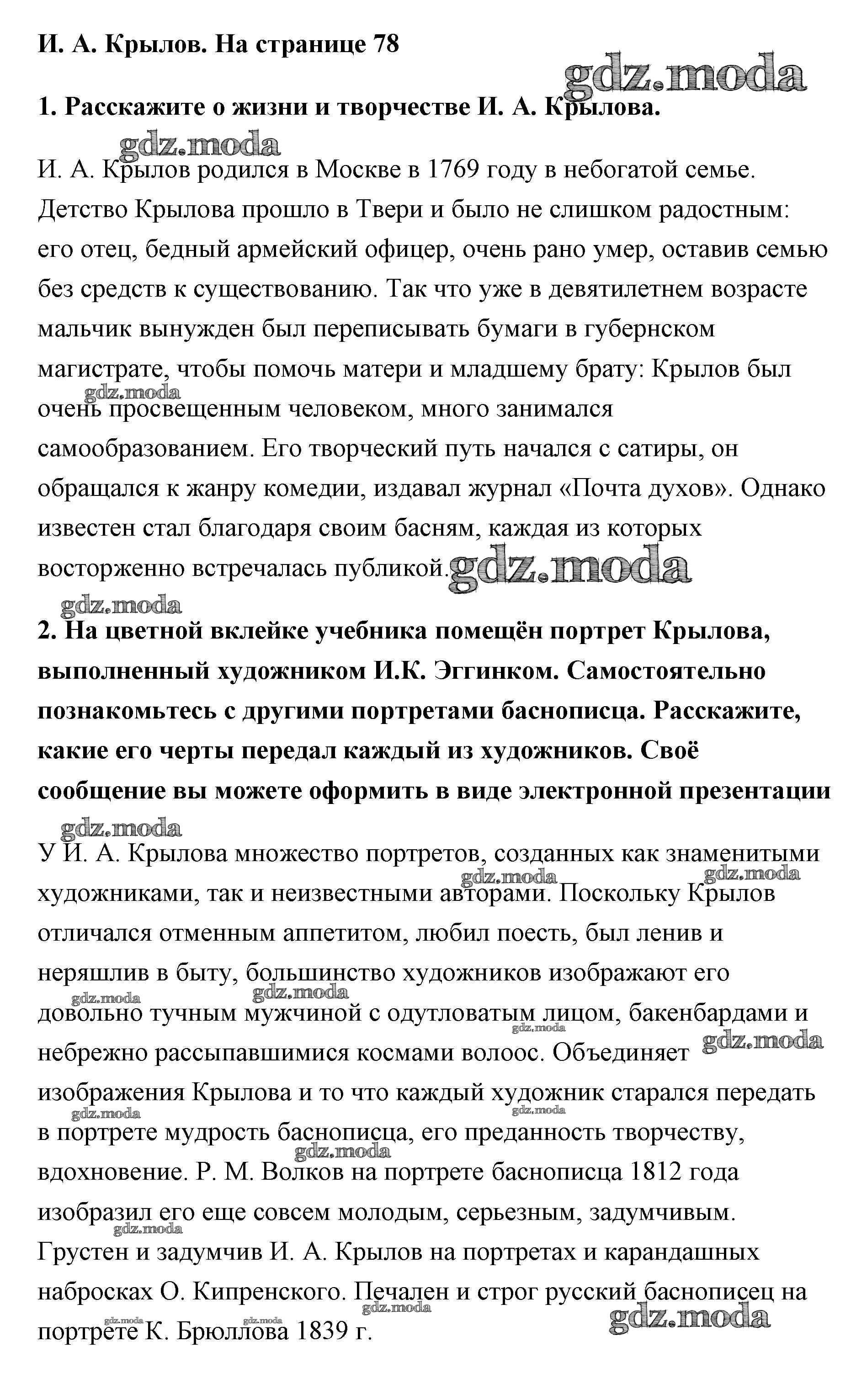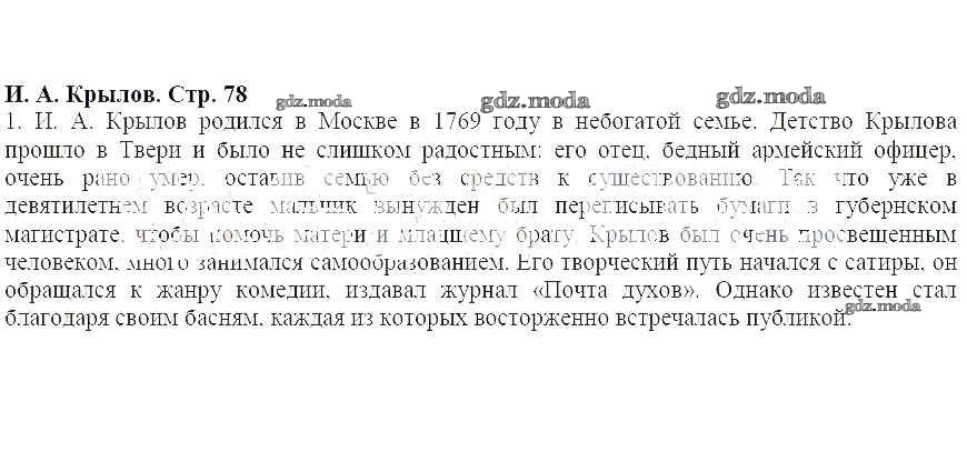 ОТВЕТ на задание № 78 Учебник по Литературе 5 класс Меркин Инновационная школа