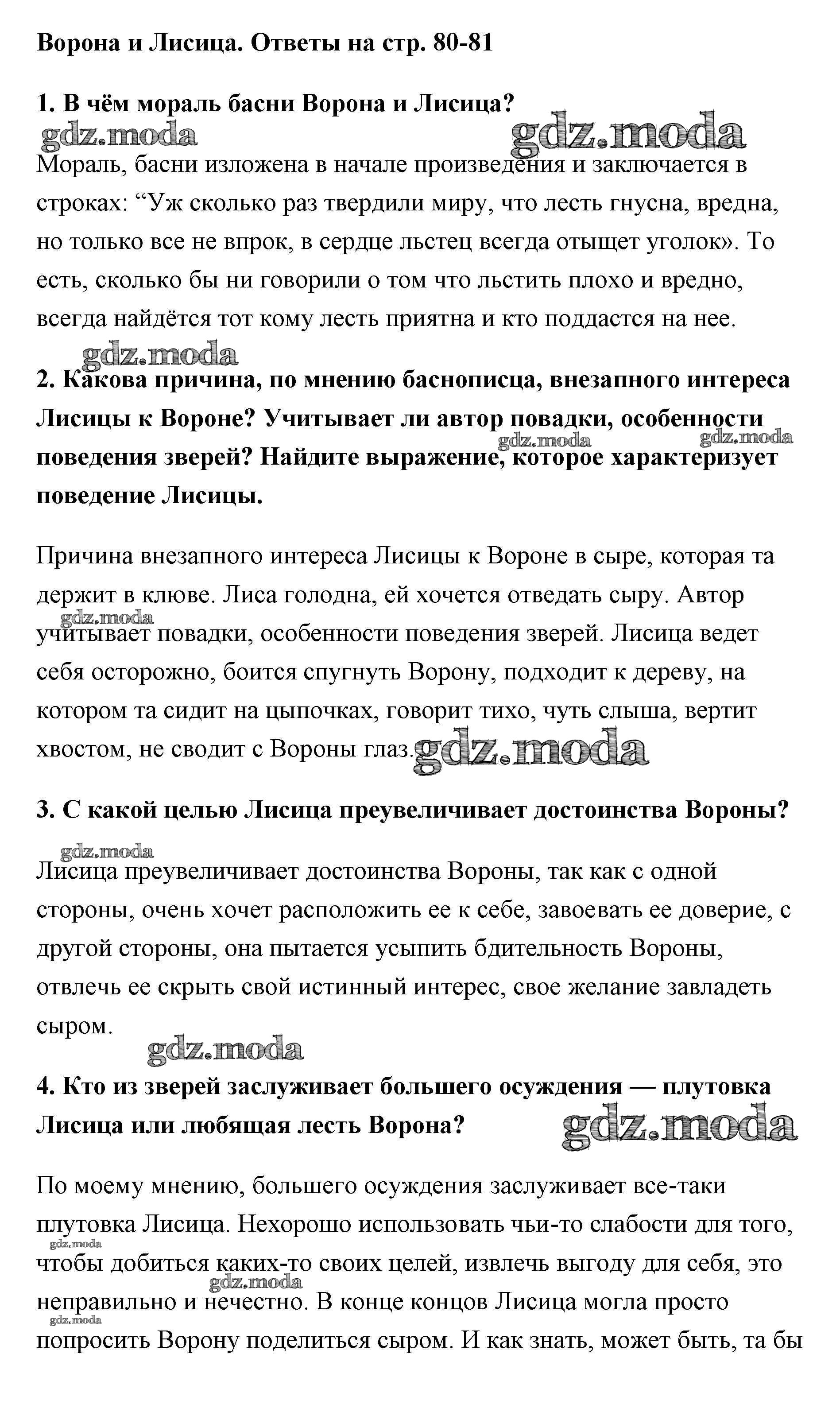 ОТВЕТ на задание № 80-81 Учебник по Литературе 5 класс Меркин Инновационная школа