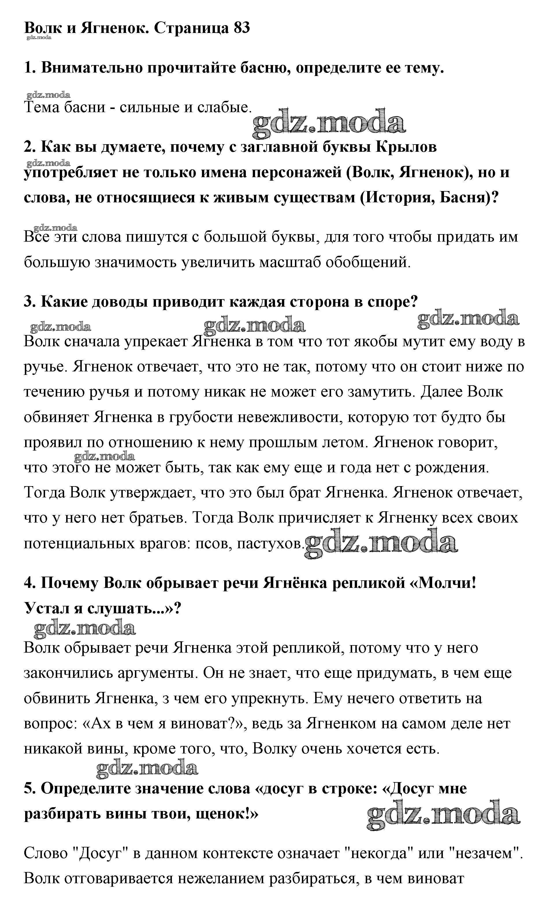 ОТВЕТ на задание № 83 Учебник по Литературе 5 класс Меркин Инновационная школа