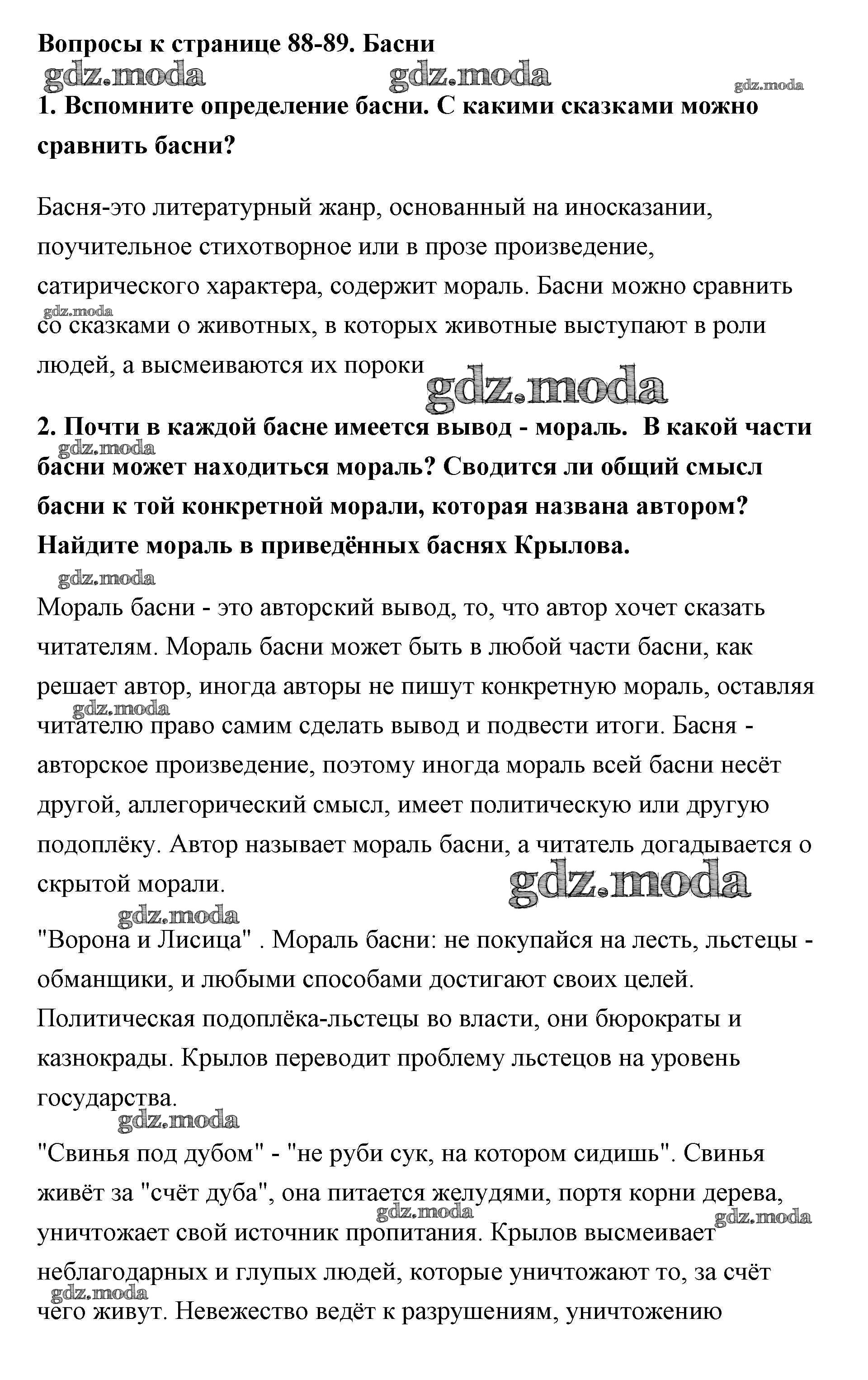 ОТВЕТ на задание № 88 Учебник по Литературе 5 класс Меркин Инновационная школа