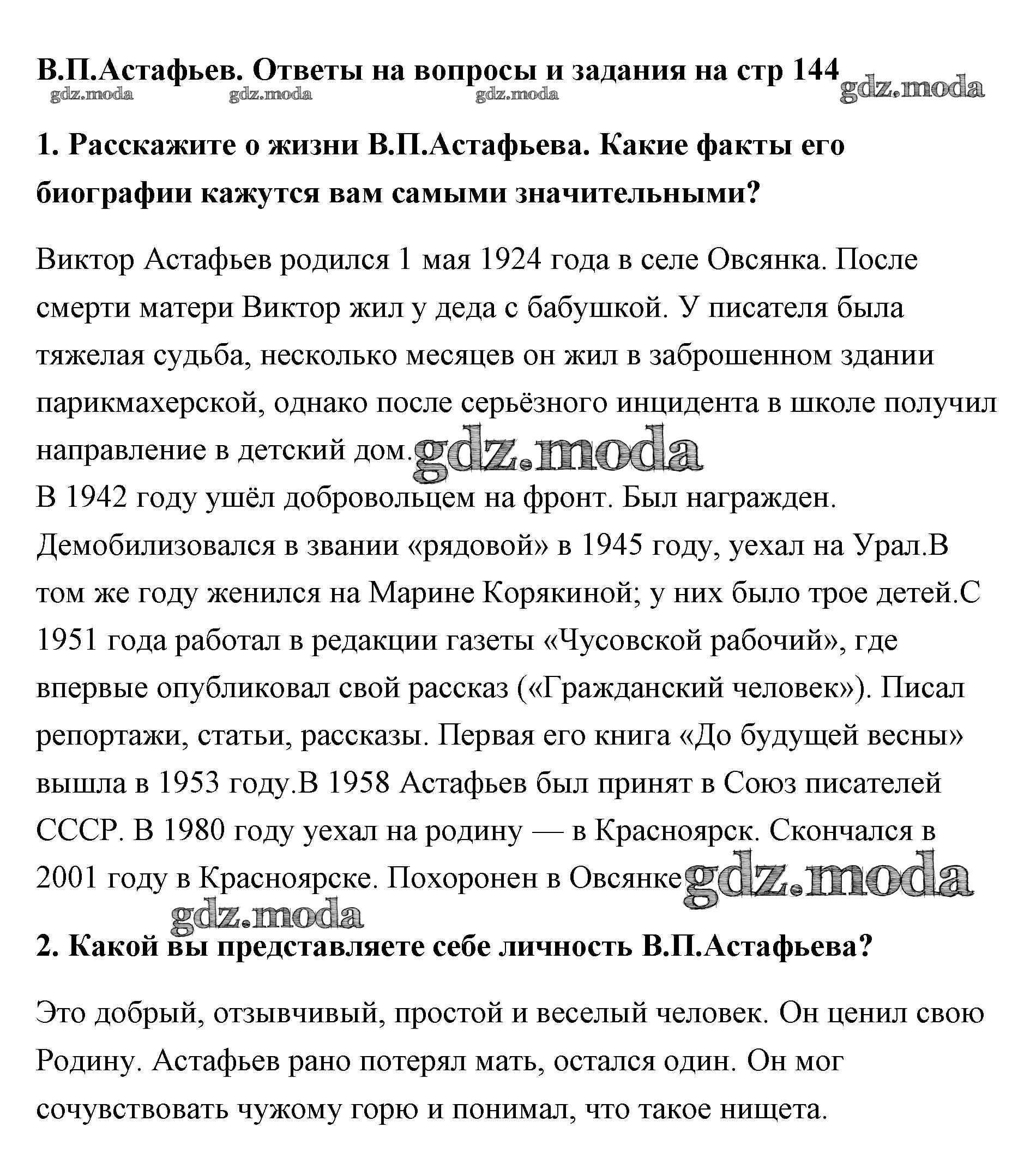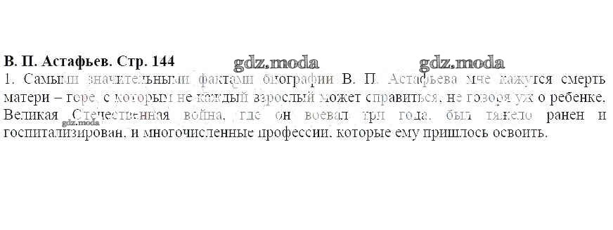 ОТВЕТ на задание № 144 Учебник по Литературе 5 класс Меркин Инновационная школа