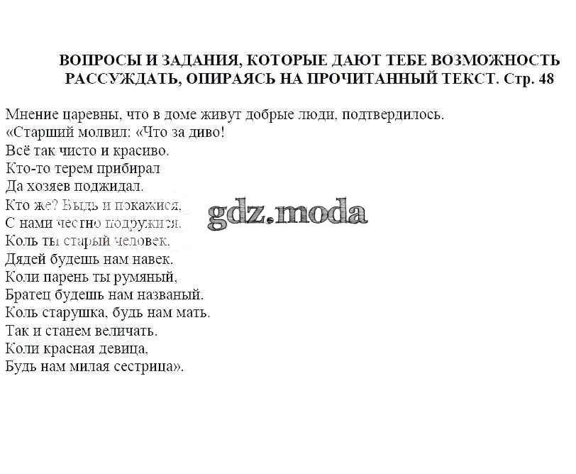 часть 1 / Сказка о мёртвой царевне и о семи богатырях А.С. Пушкина / Вопросы и задания, которые дают тебе возможность рассуждать, опираясь на прочитанный текст (стр. 48)