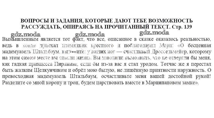 часть 1 / Щелкунчик и мышиный король / Вопросы и задания, которые дают тебе возможность рассуждать, опираясь на прочитанный текст (стр. 139)