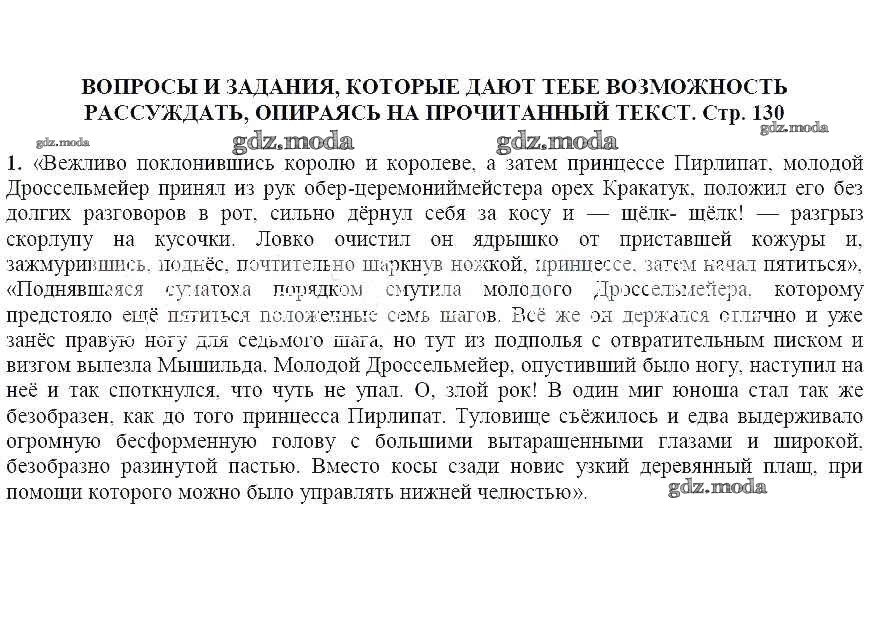 часть 1 / Щелкунчик и мышиный король / Вопросы и задания, которые дают тебе возможность рассуждать, опираясь на прочитанный текст (стр. 130) / 1