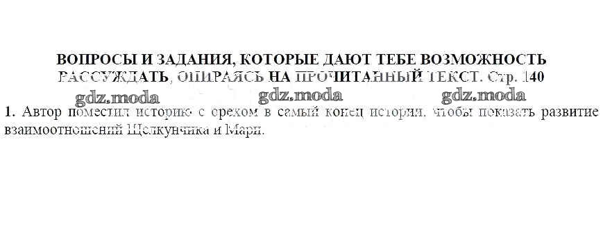 часть 1 / Щелкунчик и мышиный король / Вопросы и задания, которые дают тебе возможность рассуждать, опираясь на прочитанный текст (стр. 140) / 1