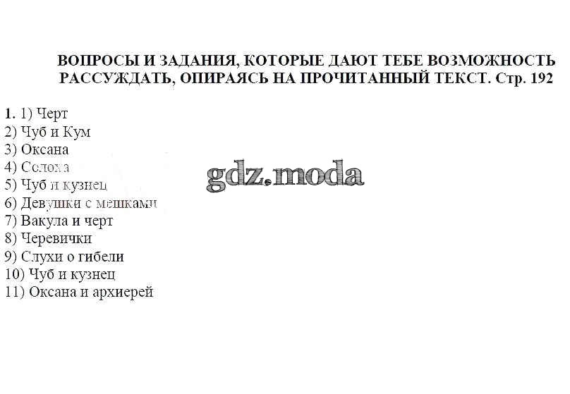 часть 1 / Ночь перед Рождеством / Вопросы и задания, которые дают тебе возможность рассуждать, опираясь на прочитанный текст (стр. 192) / 1