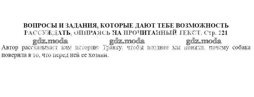 часть 1 / Кладовая солнца / Вопросы и задания, которые дают тебе возможность рассуждать, опираясь на прочитанный текст (стр. 221)