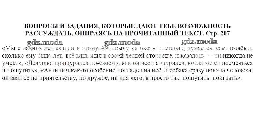 часть 1 / Кладовая солнца / Вопросы и задания, которые дают тебе возможность рассуждать, опираясь на прочитанный текст (стр. 207)