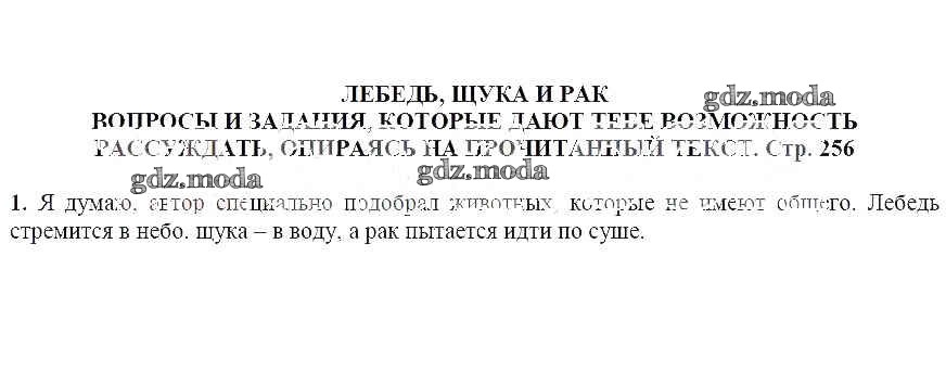 часть 1 / Лебедь, рак и щука / Вопросы и задания, которые дают тебе возможность рассуждать, опираясь на прочитанный текст (стр. 256) / 1