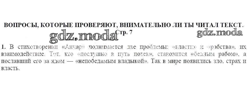 часть 2 / Анчар — философская легенда А.С. Пушкина / Вопросы, которые проверяют, внимательно ли ты читал текст (стр. 7) / 1