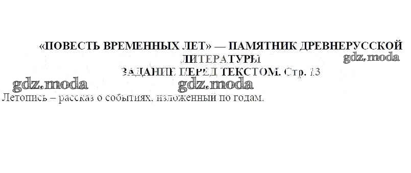 часть 2 / Повесть временных лет — памятник древнерусской литературы / Задание перед текстом (стр. 13)