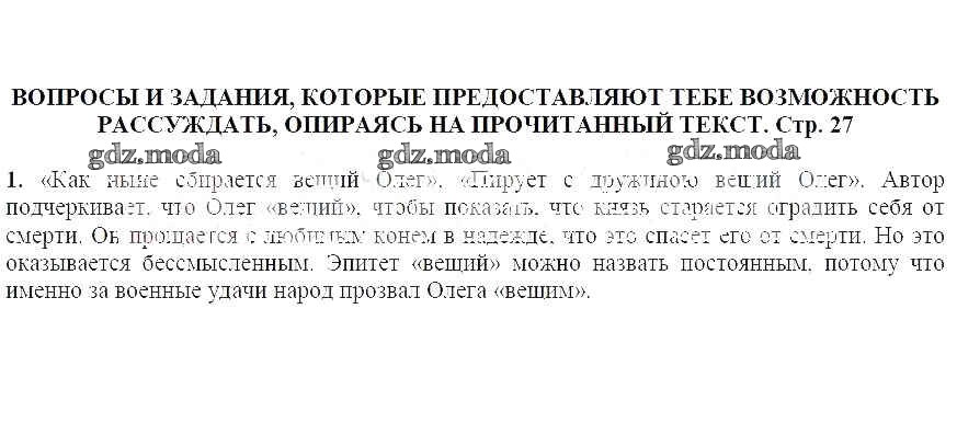 часть 2 / Песнь о вещем Олеге / Вопросы и задания, которые дают тебе возможность рассуждать, опираясь на прочитанный текст (стр. 27) / 1