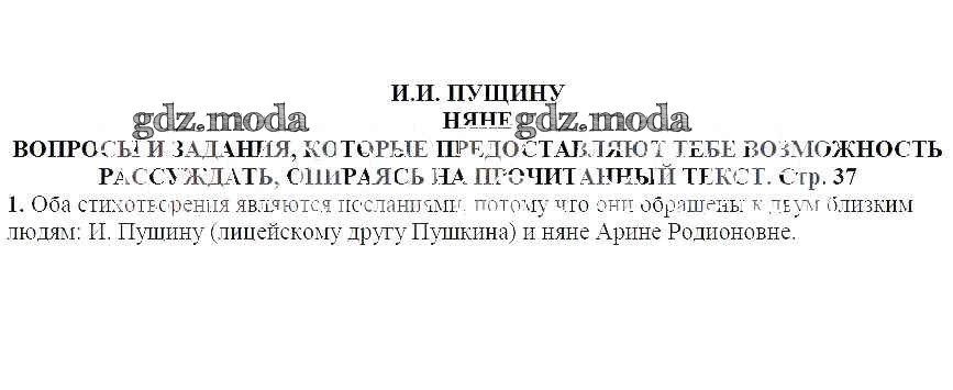 часть 2 / И.И. Пущину. Няне / Вопросы и задания, которые дают тебе возможность рассуждать, опираясь на прочитанный текст (стр. 37) / 1