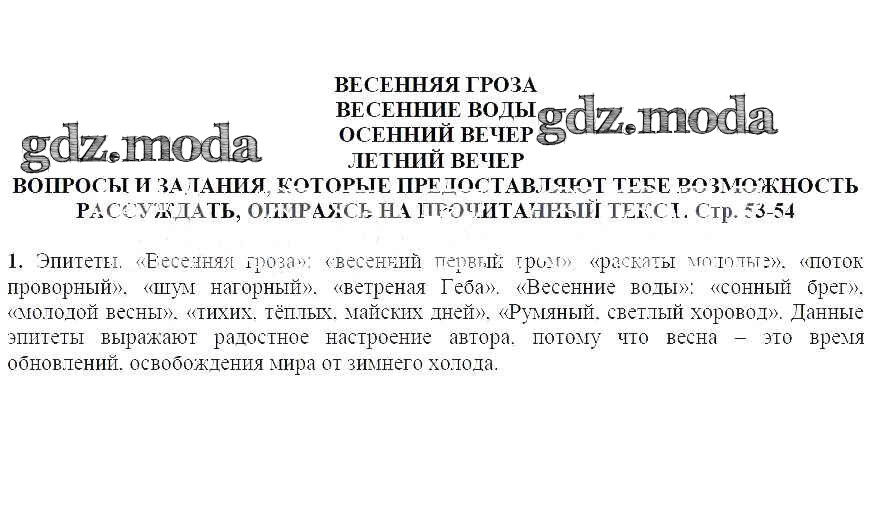часть 2 / Весенняя гроза. Весенние воды. Осенний вечер. Летний вечер / Вопросы и задания, которые дают тебе возможность рассуждать, опираясь на прочитанный текст (стр. 53-54) / 1