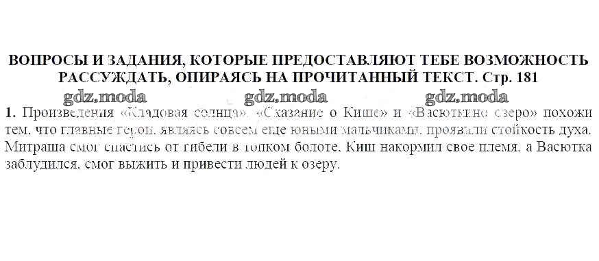 часть 2 / Васюткино озеро / Вопросы и задания, которые дают тебе возможность рассуждать, опираясь на прочитанный текст (стр. 181) / 1