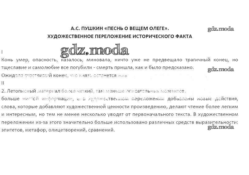 ОТВЕТ на задание № А.С. Пушкин. Песнь о вещем Олеге. Художественное переложение исторического факта Рабочая тетрадь по Литературе 5 класс Бунеев Школа 2100
