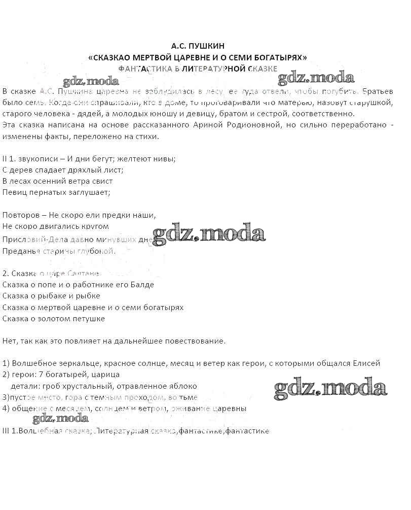 ОТВЕТ на задание № А.С. Пушкин. Сказка о мёртвой царевне и о семи богатырях. Фантастика в литературной сказке Рабочая тетрадь по Литературе 5 класс Бунеев Школа 2100